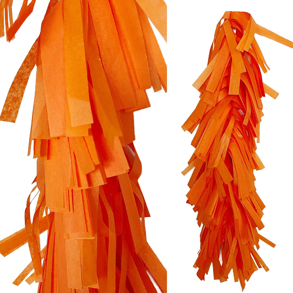 Our hand cut and assembled tissue tassels are 2 feet long with 6 foot long cotton string. Tassels are created from 16 layers of quality tissue paper for ultimate fluff without weighing down your helium balloons. Tassels can connect for longer custom length.